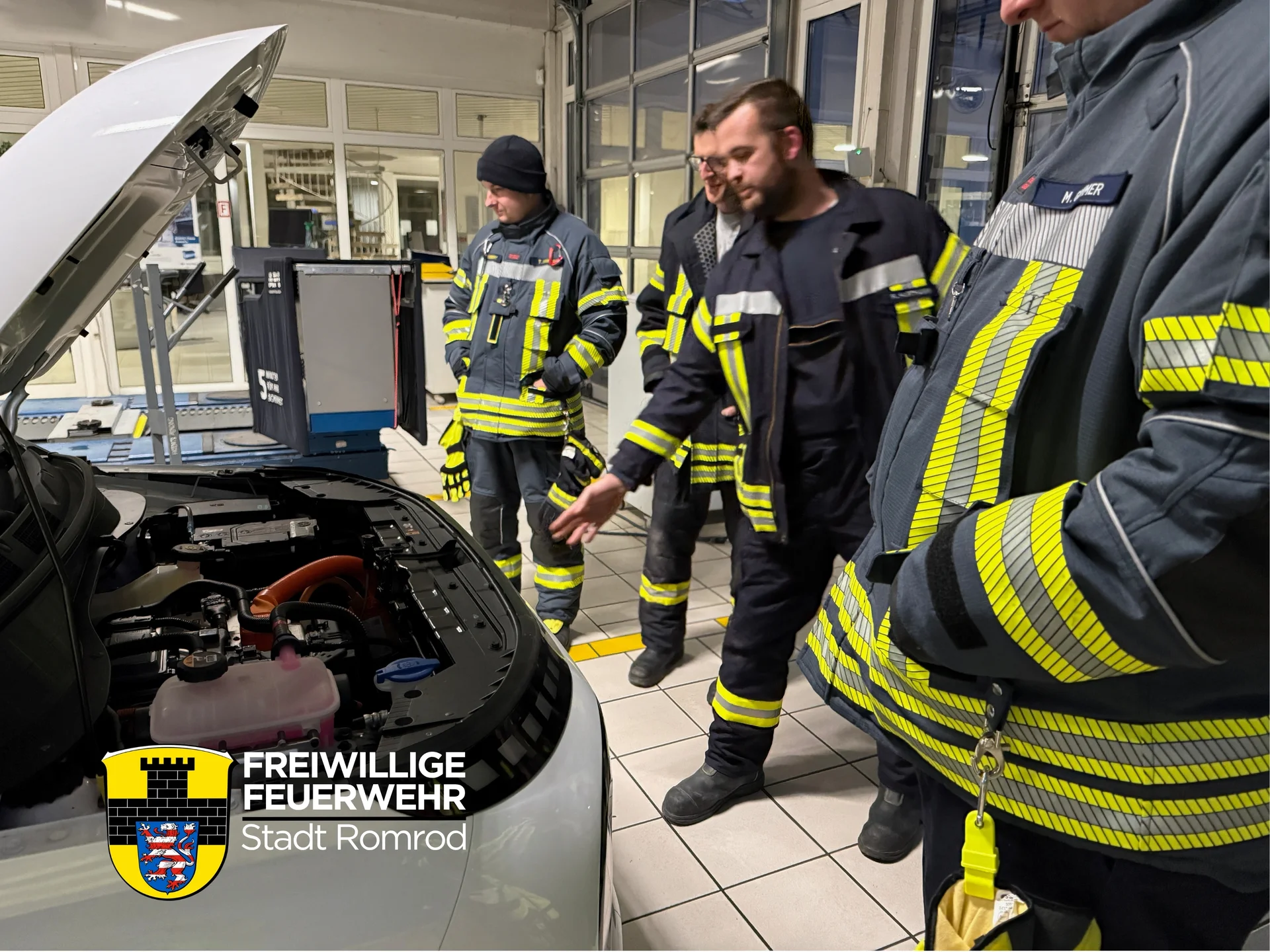 E Auto im Einsatz: Feuerwehr Romrod trainiert für den Ernstfall